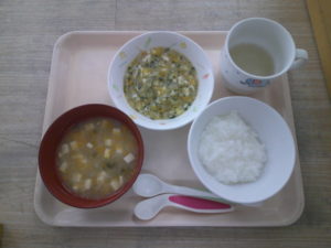 中期食・・・お粥、なすの味噌汁、かれいと野菜の煮物