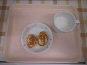 午後おやつ ふわふわホットケーキ、牛乳・・・494kcal