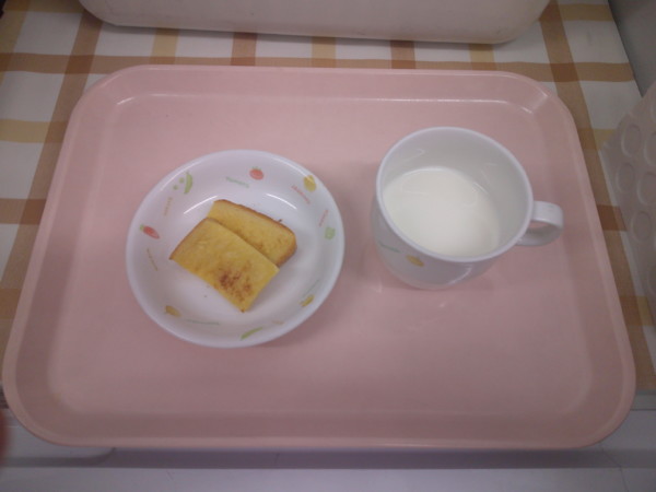 午後おやつ オレンジ風味フレンチトース、牛乳・・・445kcal